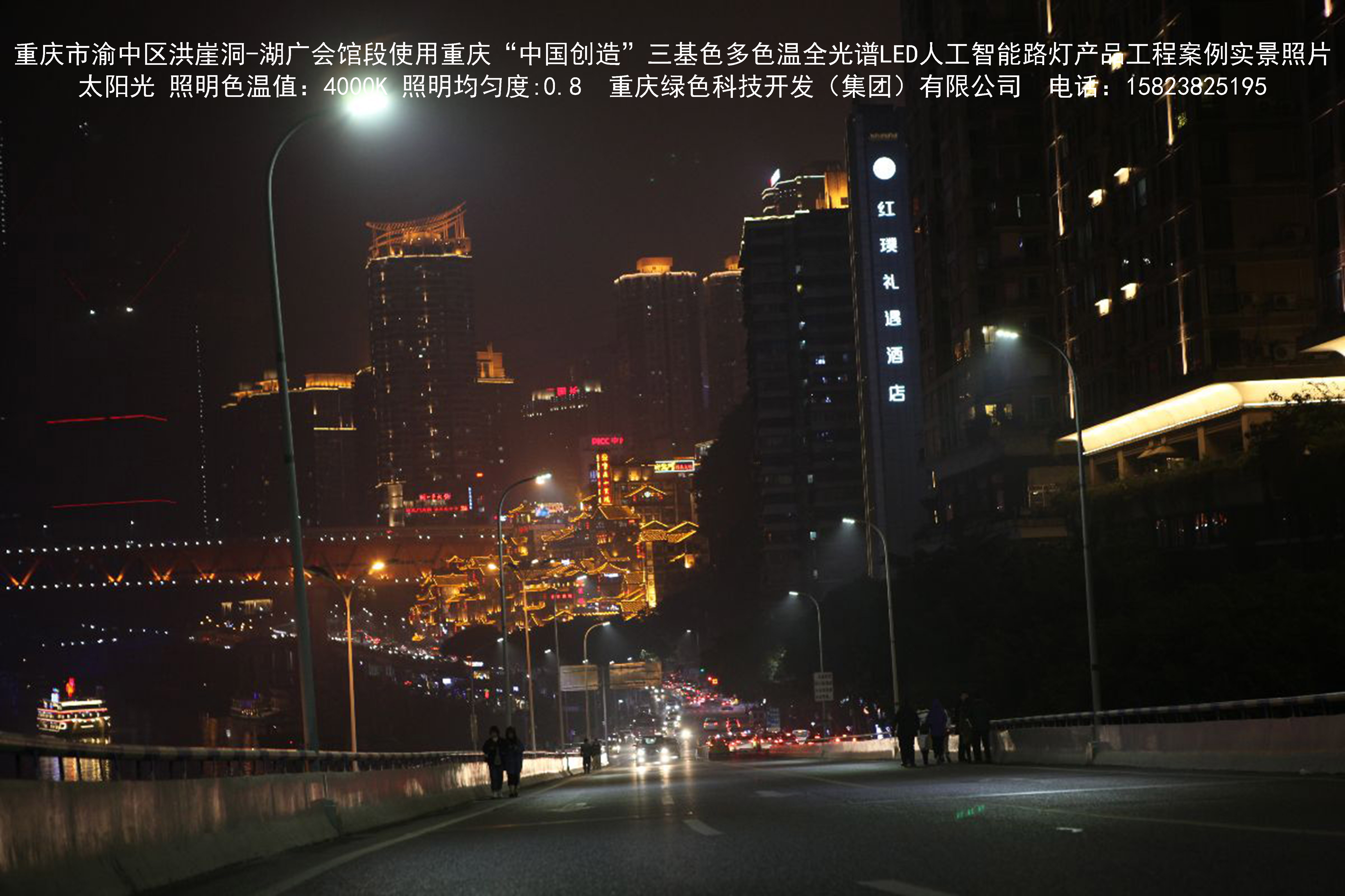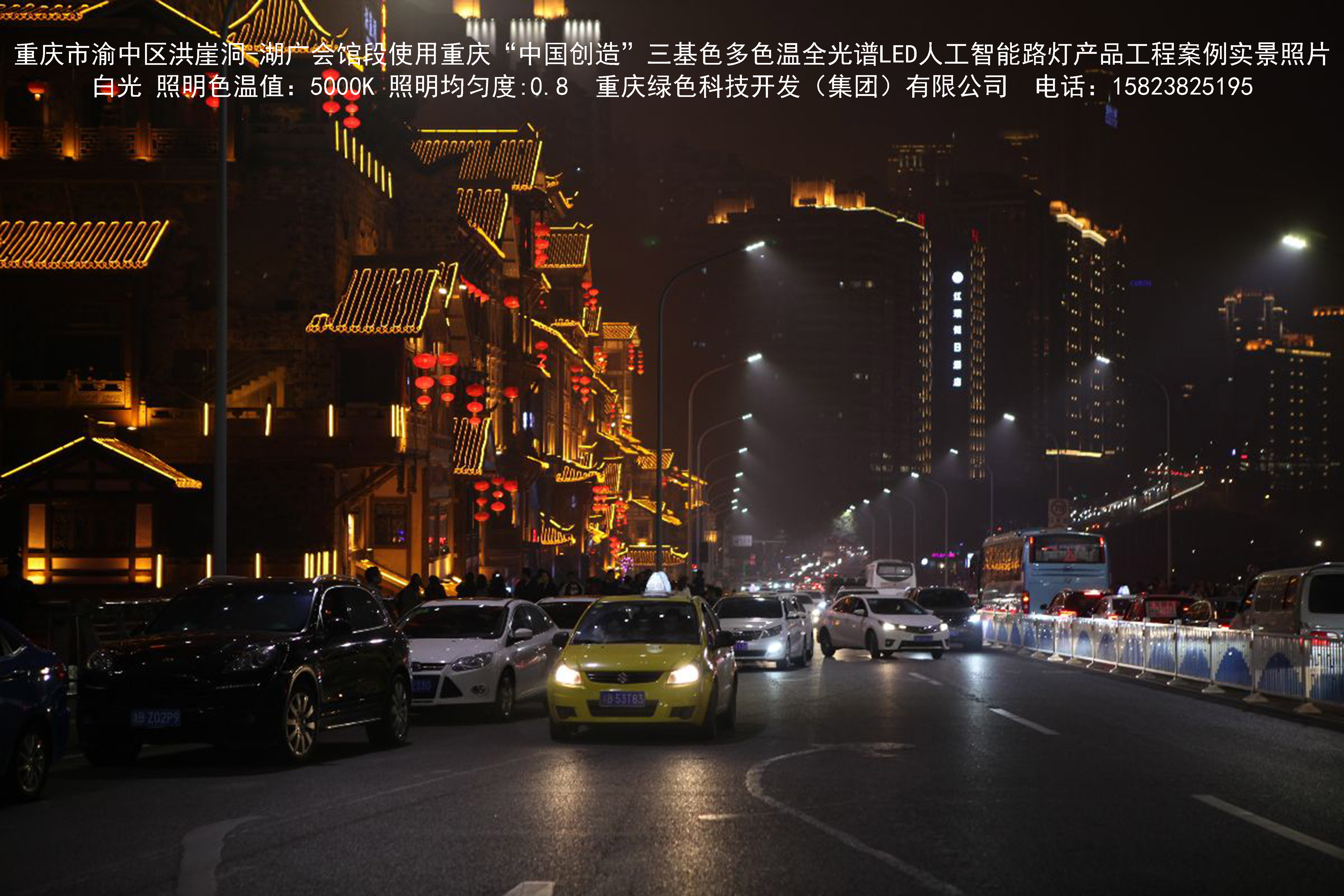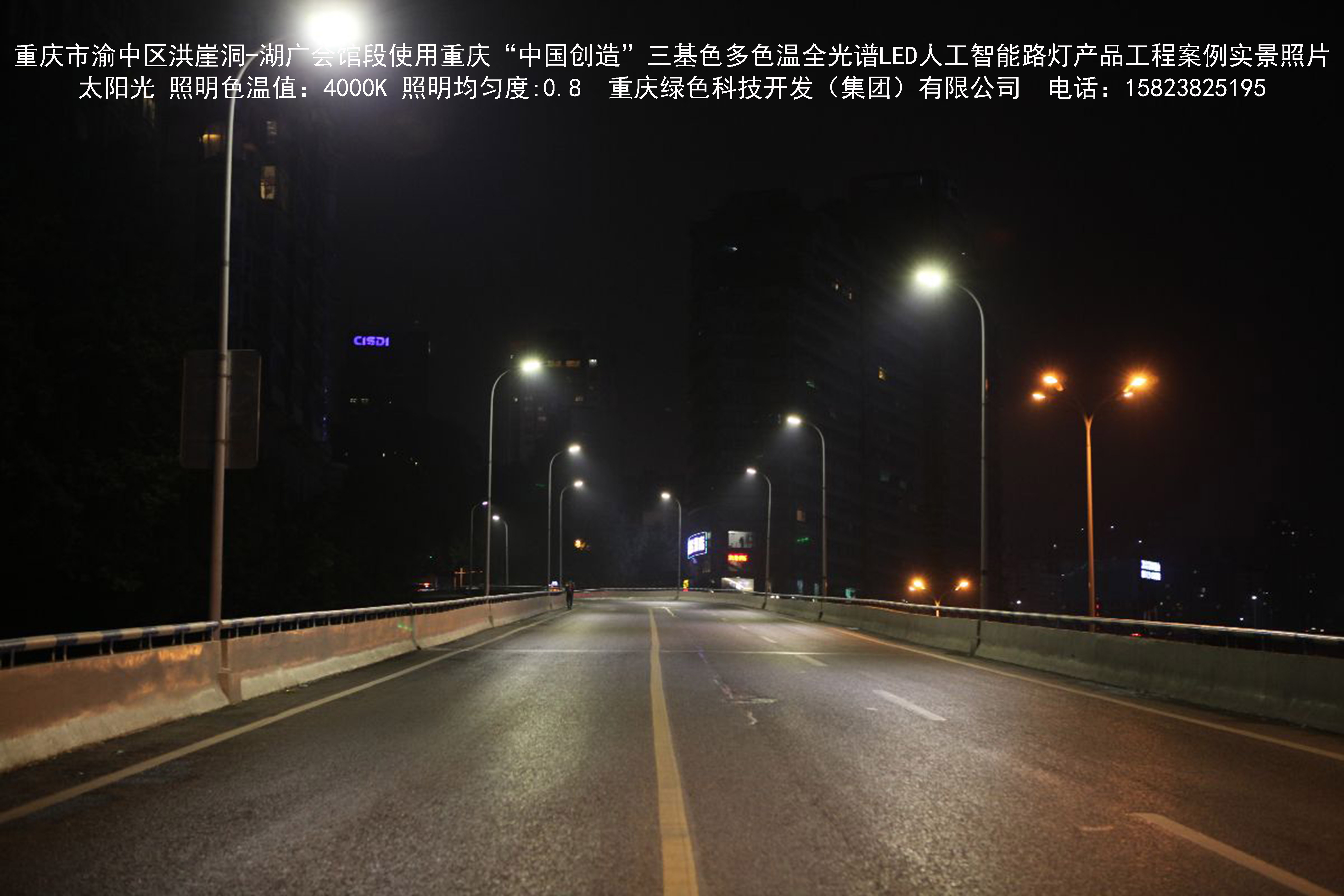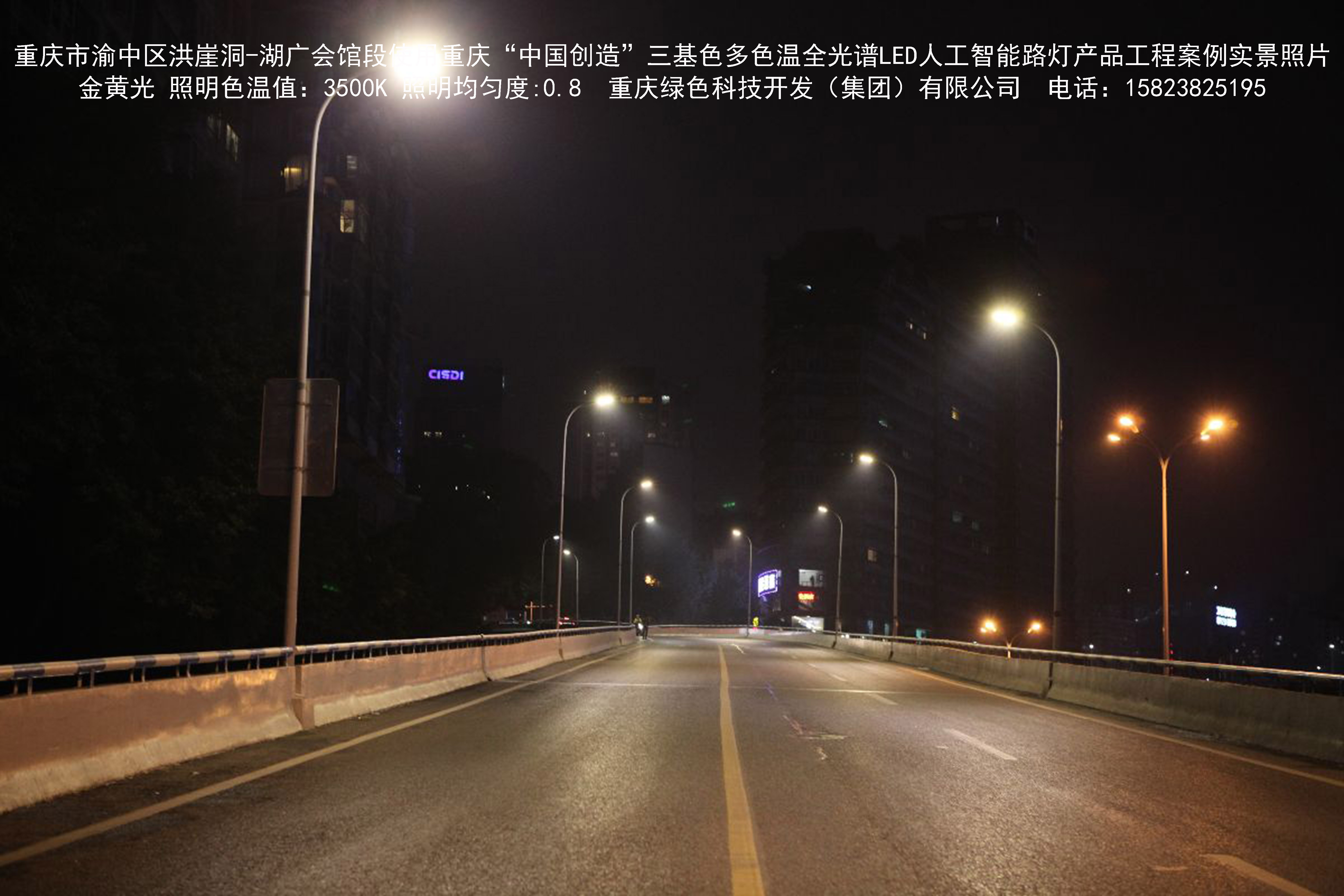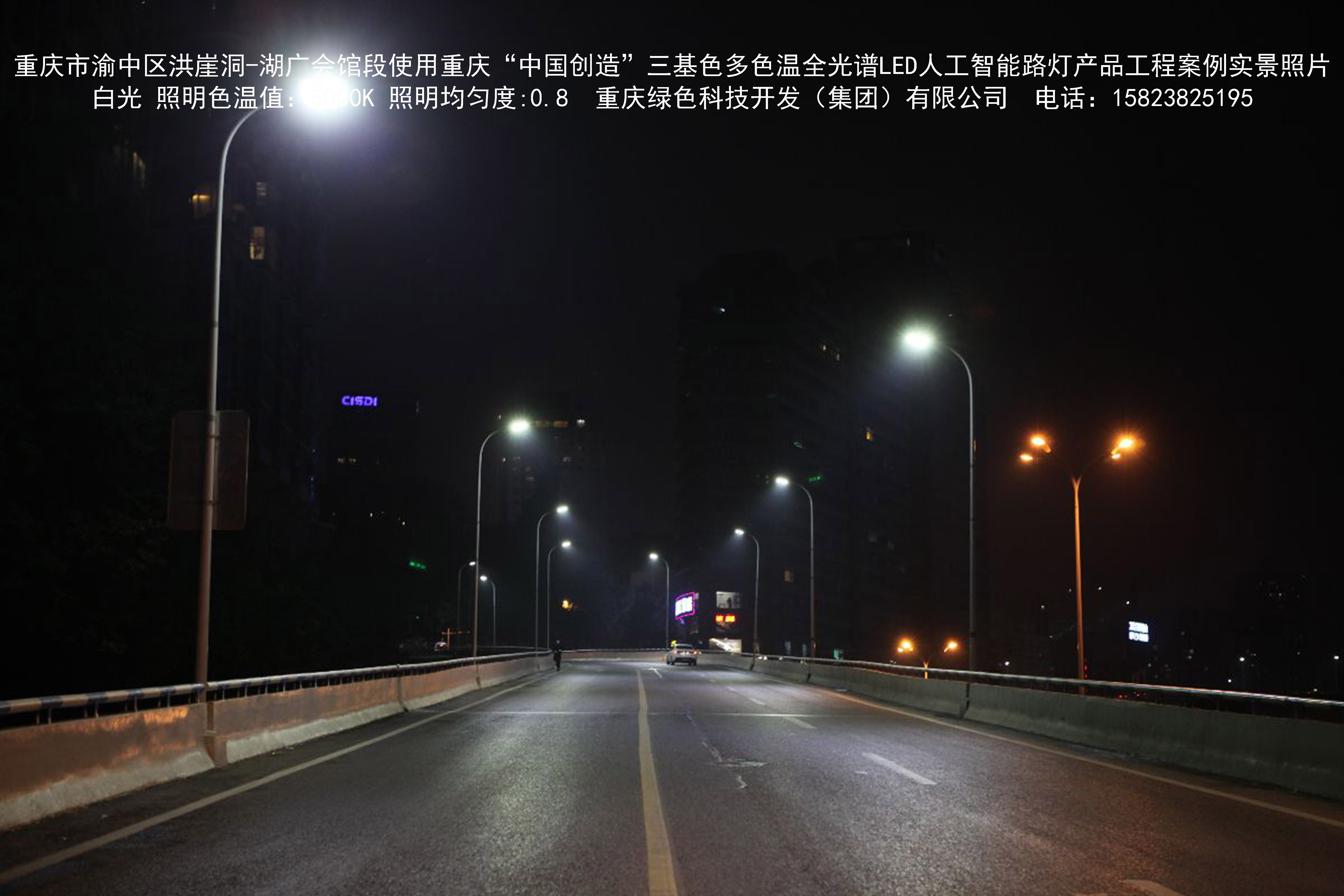 2018年12月,重慶市城市照明管理局使用我司自主研發(fā)制造的重慶“中國(guó)創(chuàng)造”三基色多色溫全光譜LED人工智能路燈系列產(chǎn)品,實(shí)施了渝中區(qū)市政設(shè)施品質(zhì)提升工程。該工程已全面竣工。工程實(shí)施后,極大地提高了城市照明清晰度、燈光均勻度、舒適度。通過智能終端實(shí)現(xiàn)單燈感知、線纜防盜報(bào)警,與原高壓鈉燈相比,節(jié)能率60%以上,有效解決了關(guān)閉控制回路或間隔關(guān)燈方式造成的照明暗區(qū),確保行人和車輛通行的安全,實(shí)現(xiàn)城市路燈照明系統(tǒng)的智能化管理,推進(jìn)了智慧城市建設(shè)。